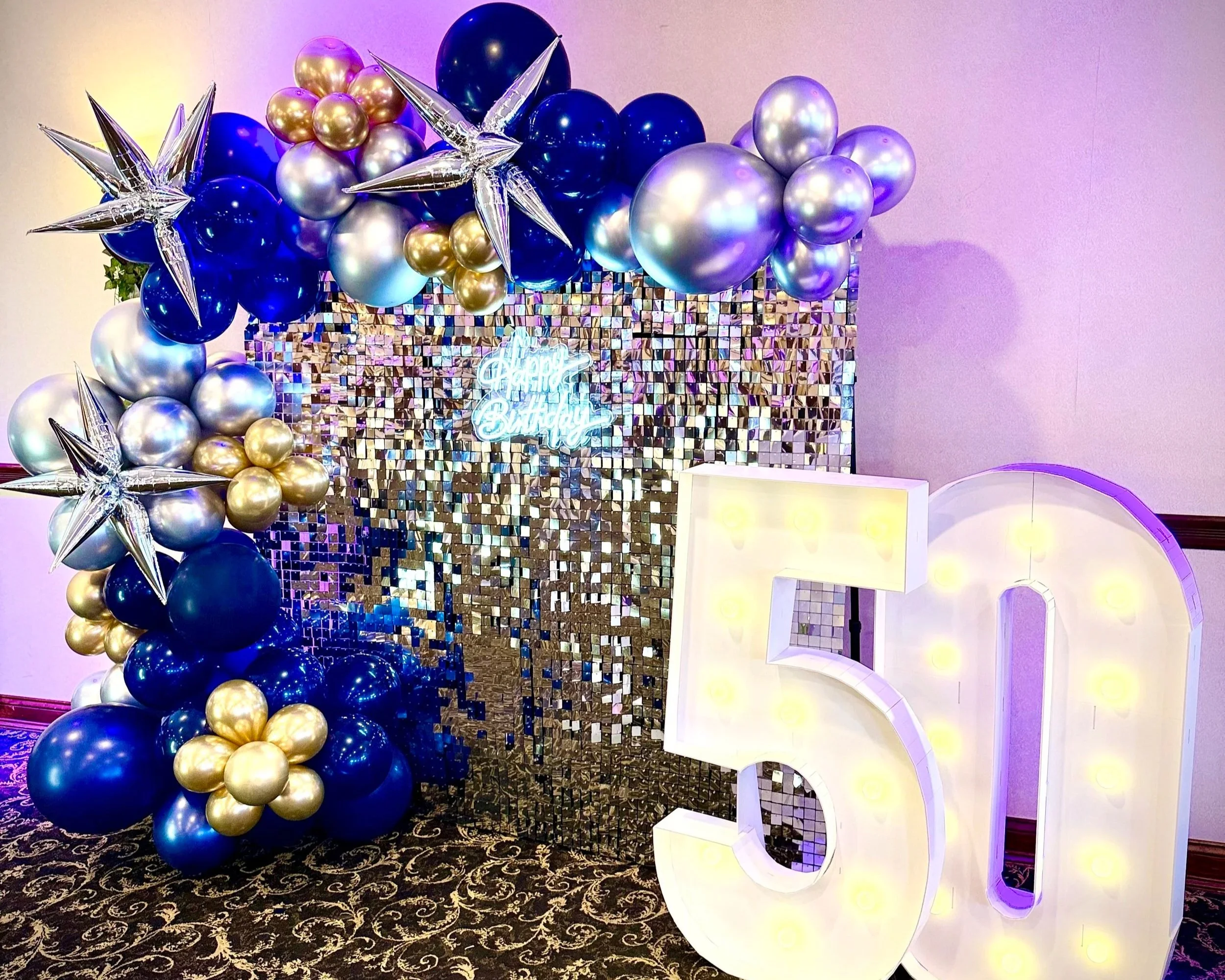 • Deluxe Balloon Backdrop - Includes balloons, custom design decor elements such as flowers or LED signage