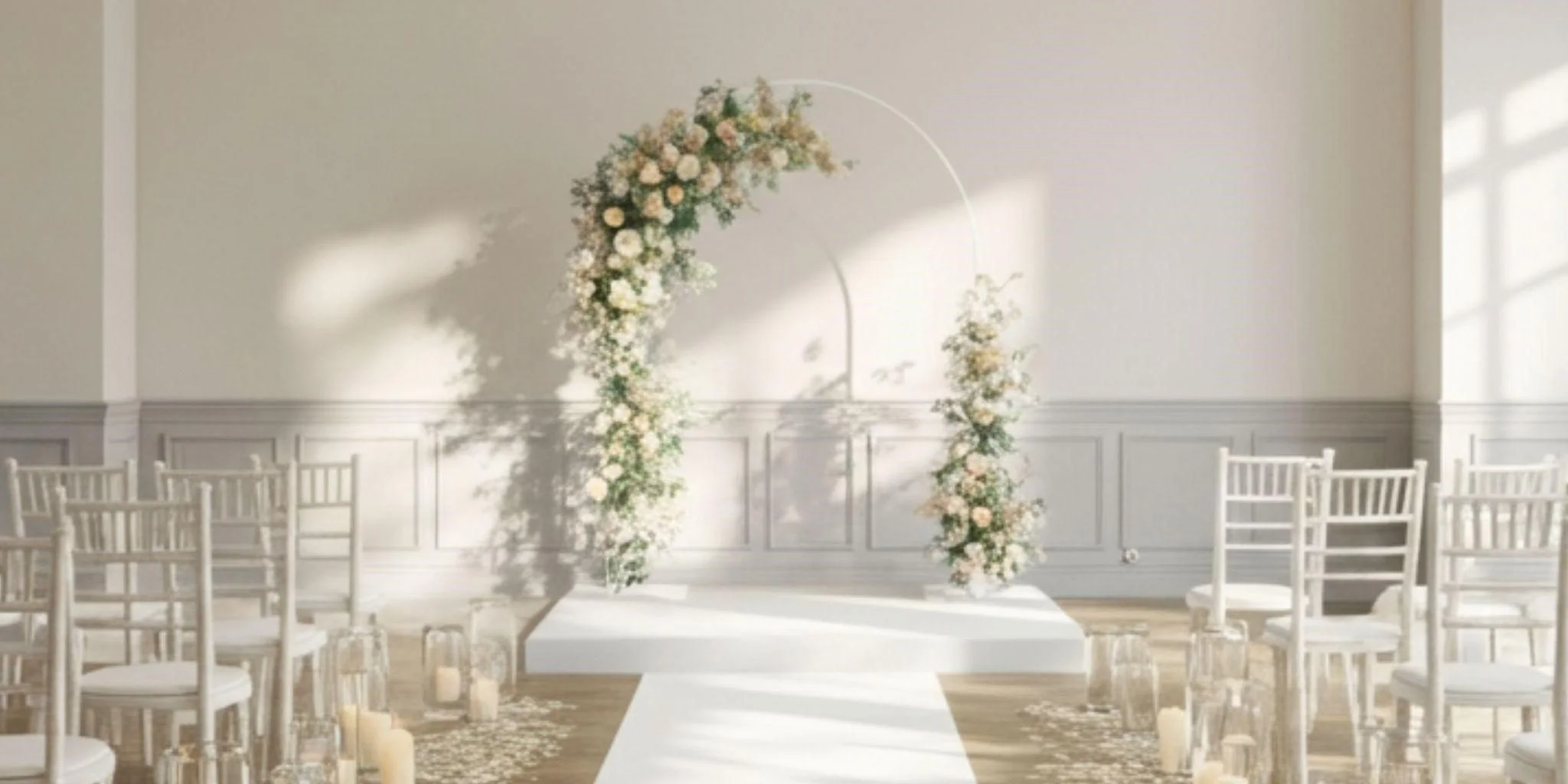 Add light flowers or ribbons to crank up the floaty, fairy-tale charm that's huge in wedding events.